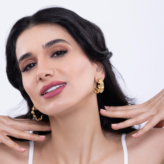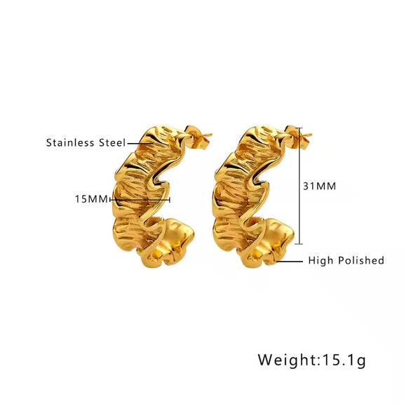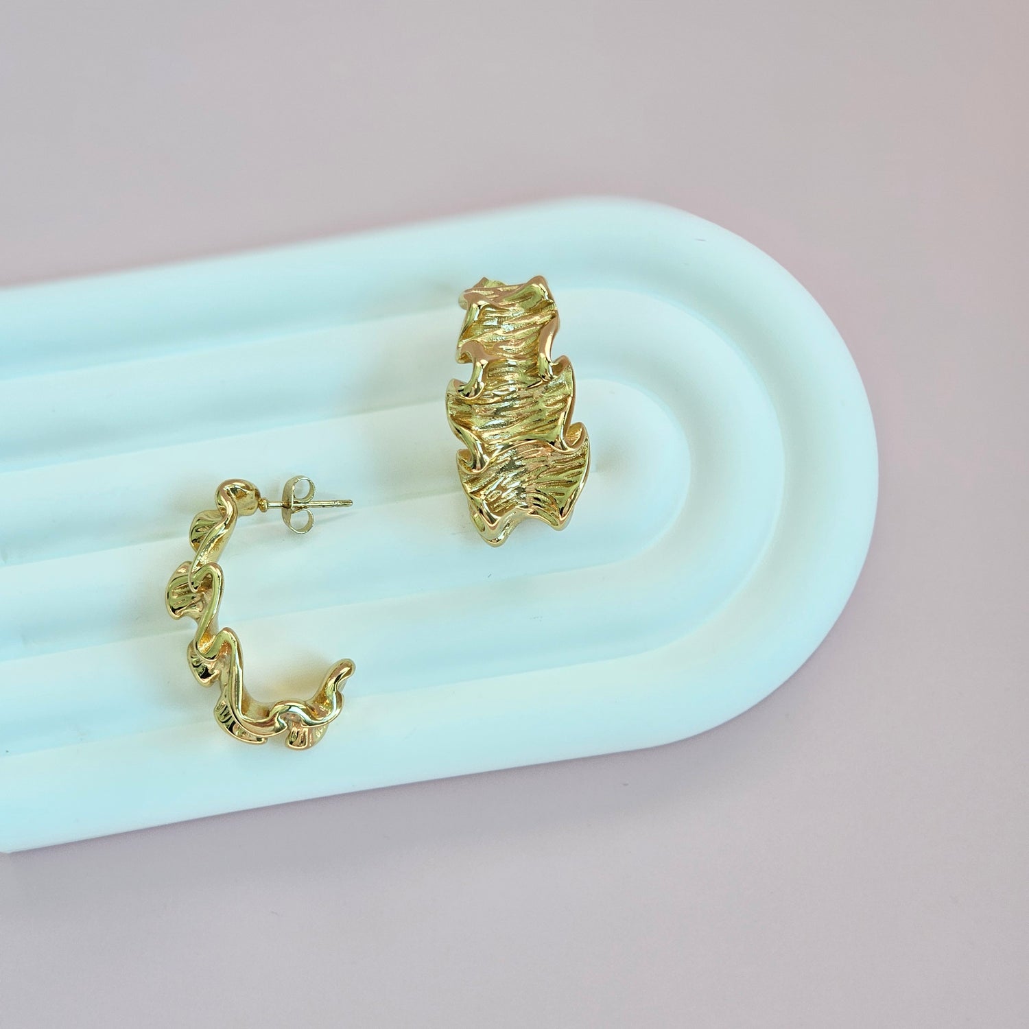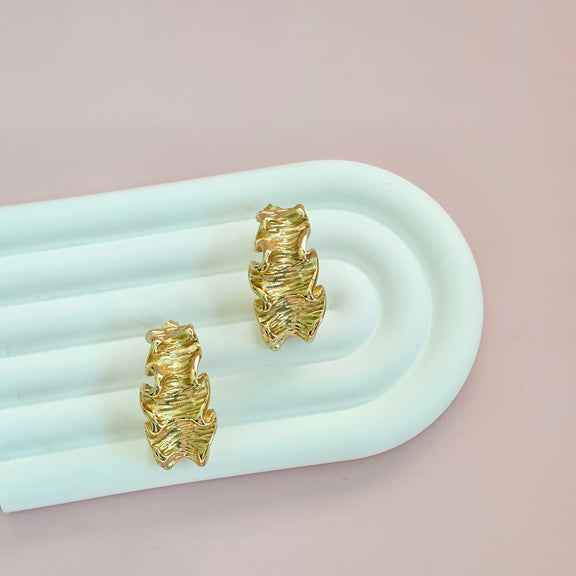 Add a touch of texture and elegance to your style with the Silk Shine Earrings. Featuring an intricate, wave-like pattern that mimics the gentle flow of silk, these 18K gold-plated earrings offer a refined and sophisticated look. Their lightweight design ensures comfort, making them perfect for all-day wear.