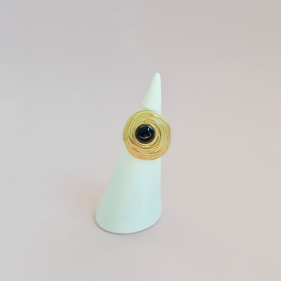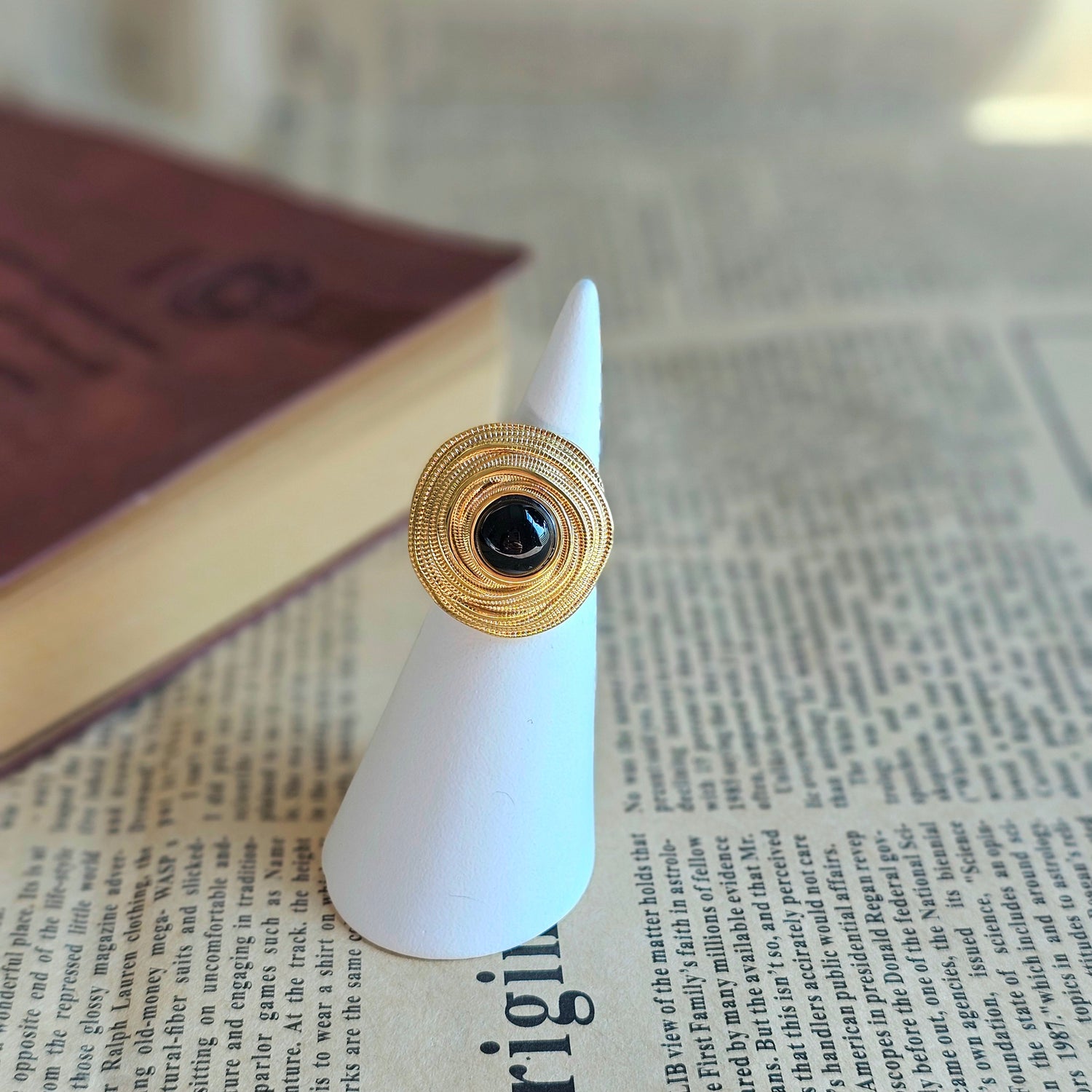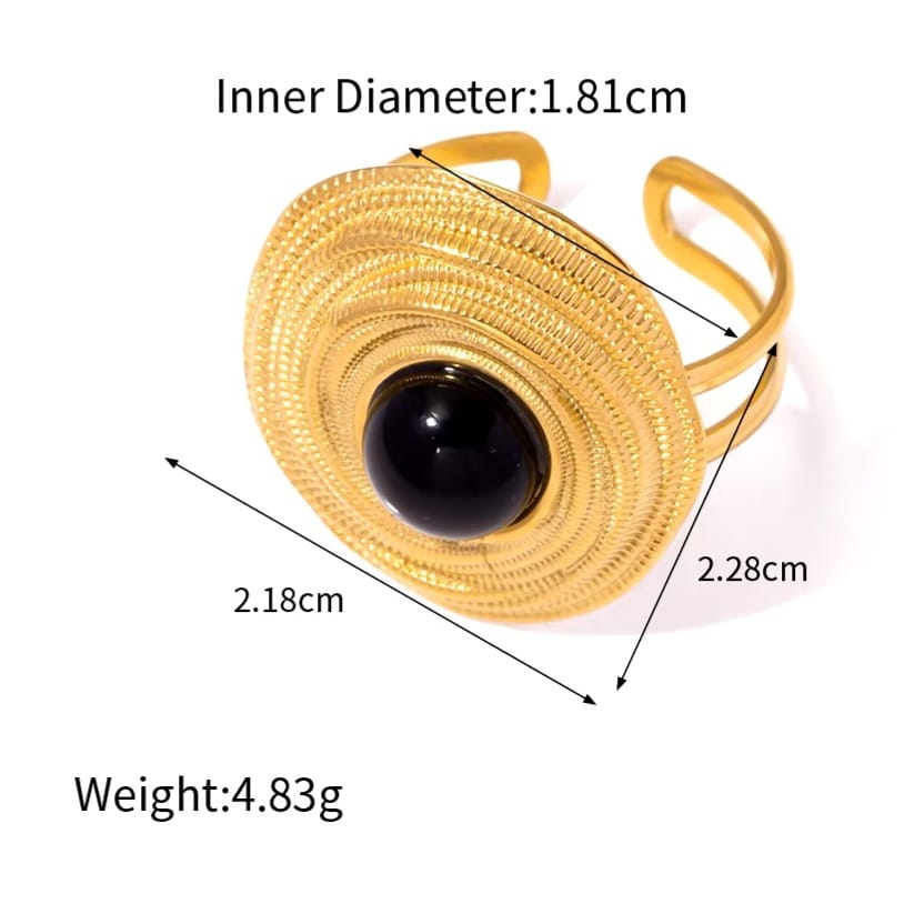 Step into timeless sophistication with the Vintage Vine Ring. This stunning piece features intricate, layered detailing in 18K gold plating, encircling a bold black gemstone at its center. Inspired by vintage artistry, this ring adds a touch of elegance and refinement to any outfit.